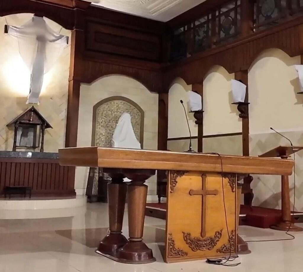Ribuan umat Katolik Paroki Gereja Santa Maria Bunda Bunda Kristus Wedi dengan suasana yang perlahan berubah dari kehangatan perjamuan menjadi kesunyian yang mencekam.